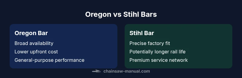 When homeowners and professionals ask, “are Oregon chainsaw bars better than Stihl,” the answer is not a simple yes or no. The most reliable guidance starts with the basics: you must match bar pitch, gauge, and length to your chain and saw. This article treats the question as a decision framework rather than a brand duel. According to Chainsaw Manual, the best bar for your saw aligns with the model’s factory specifications, maintenance routine, and the tasks you perform most often. The Chainsaw Manual team emphasizes that the overall bar performance is a function of fit, lubrication, and proper tension as much as the brand name. The goal is to minimize derailment, maximize oil delivery, and reduce rail wear over time. In practice, users frequently find that when pitch, gauge, and length are matched, Oregon and Stihl bars perform comparably for routine felling, limbing, and pruning tasks. The question remains: which wheel is more trusted for your setup? The answer depends on your specific saw, bar choice, and how you maintain both the chain and the bar.