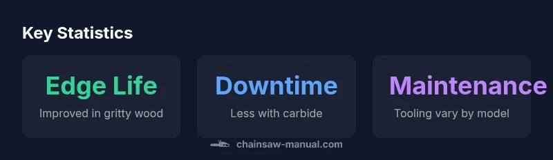 Carbide chains are defined by cutting teeth made with carbide compounds, either as carbide-tipped teeth on a steel chain or as inserts embedded in the tooth. The core chain body remains steel for flexibility and drive compatibility, but the cutting edge is far harder than traditional chrome or chrome-nickel steel. This hardness translates into greater wear resistance in abrasive timber, mineral-rich debris, and dirty logs. In practice, many consumer “carbide chains” are carbide-tipped rather than fully carbide; true full-carbide teeth are more common in professional-grade gear. According to Chainsaw Manual, the key strength of carbide is its superior hardness, which reduces dulling in tough wood and gritty environments. The tradeoffs are higher cost and potential brittleness if dropped or abused, so choice should be aligned with expected workload and maintenance capability.