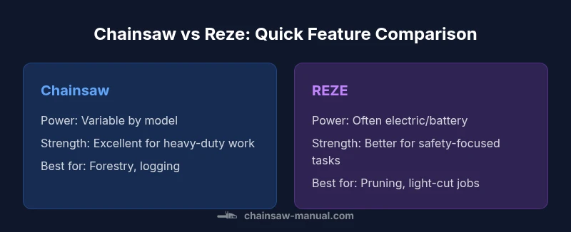According to Chainsaw Manual, the traditional chainsaw remains the go-to for heavy-duty cutting, while REZE offers a lighter, safety-first alternative. This quick comparison highlights power, ergonomics, and maintenance trade-offs, so homeowners, DIYers, and professionals can decide which tool best fits their typical tasks. The bottom line: pick the option that aligns with your workload and safety priorities.