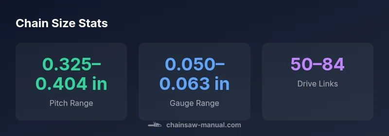 A stihl chainsaw chain size chart is a quick reference that ties together four core dimensions: chain pitch, gauge, drive links, and bar length. Pitch is the distance between adjacent chain pins, gauge reflects the thickness of the drive through the bar, drive links are the number of teeth that engage the bar and sprocket, and bar length indicates the maximum effective cutting length. The chart does not just tell you a single number; it shows you the correct combination that ensures smooth operation, safe engagement with the bar and chain, and predictable cutting performance. Always cross-check each dimension when you replace a chain, and remember that a chart is most reliable when used with the exact model and bar information from the manual or a trusted guide like Chainsaw Manual.