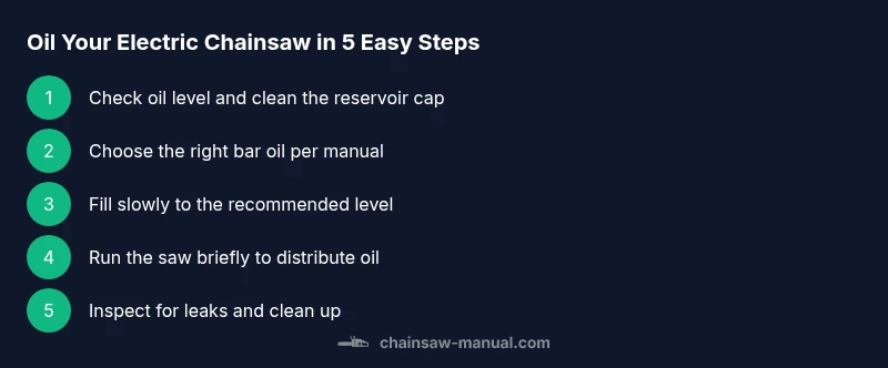 Oil plays a crucial role in electric chainsaws by lubrication, cooling, and debris control. Even though electric models don’t burn fuel, their moving parts generate heat and friction. The chain and guide bar require continuous lubrication to prevent wear, heat buildup, and potential seizing. The right oil keeps the chain moving smoothly, reduces fling, and helps keep the drive system clean. When someone asks, “electric chainsaw what kind of oil,” the answer starts with using the bar-oil formulation recommended by the manufacturer. According to Chainsaw Manual Analysis, 2026, proper lubrication is essential for performance across power sources. Remember: bar oil is not the same as engine oil, and using the wrong lubricant can degrade seals and attract dirt. Always follow the unit’s manual for viscosity guidance and avoid mixing lubricants. Store the oil in a clean container and keep the saw and oil cool to prevent thickening in cold weather.