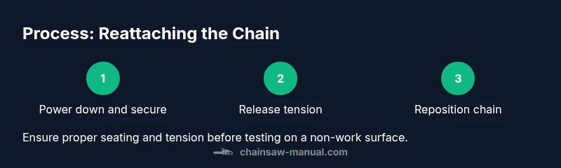 Learn a safe, practical method to reattach a chainsaw chain with clear steps, tools, and safety checks. This guide covers tension, bar inspection, lubrication, and maintenance to keep your chainsaw running reliably.