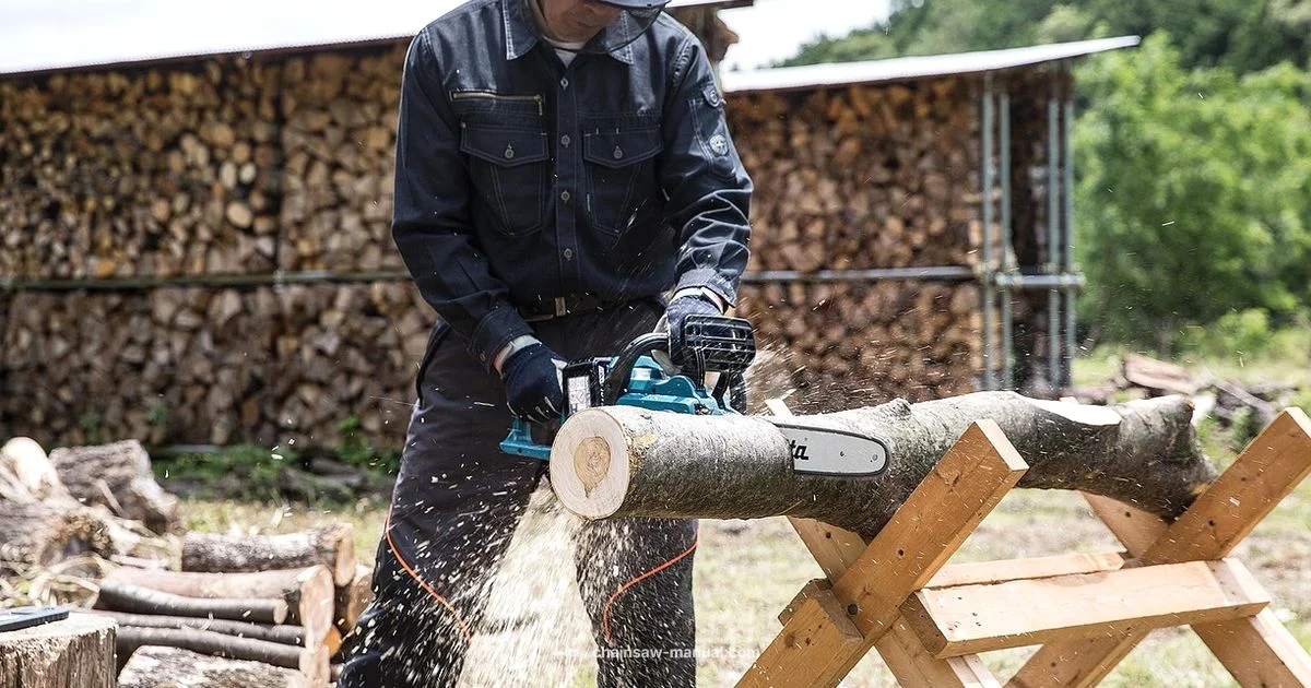 Place the saw on stable ground, stand with feet shoulder-width apart, and align the body to the cut.