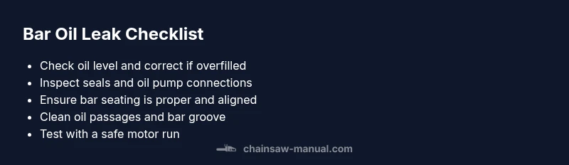 Urgent, practical troubleshooting for a chainsaw leaking bar oil. Learn causes, safety steps, diagnostic flow, and step-by-step fixes to restore safe operation.