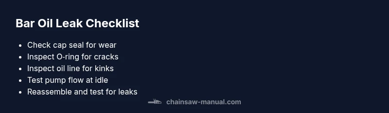 When users ask, is it normal for chainsaw to leak bar oil, it’s often about the difference between a tiny drip while resting and a continuous leak during use. Chainsaw Manual emphasizes that occasional minor seepage during storage or after long, hot cuts can happen as seals expand and contract with temperature. However, a persistent leak is not normal and can indicate a worn seal, cracked reservoir, or misadjusted oil pump. Treat leaks as a warning sign that the bar and chain area could be starved of oil or, worse, that fuel and oil may cross‑contaminate working parts. Always prioritize safety: wear gloves and eye protection when inspecting and handling the oil system. According to Chainsaw Manual, understanding the boundary between normal temperature seepage and a real leak is essential for safe maintenance and avoiding costly damage.