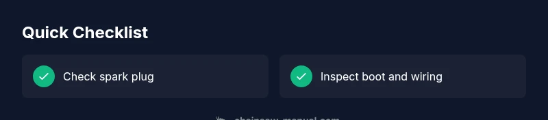 Before you touch tools, ensure the saw is off, the spark plug boot is disconnected, and you’re working in a well‑ventilated area away from flames. Check the spark plug boot for cracks or looseness, inspect the spark plug for oil/fouling or a burned electrode, and look for obvious damaged wiring. If you see obvious damage or you can’t see a clean ground, do not continue. Instead, move to a diagnostic approach. This initial check can spare you time and reduces risk.